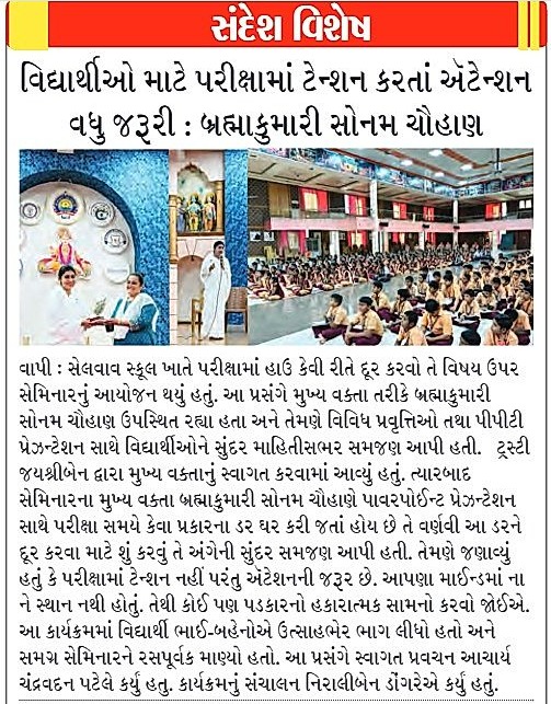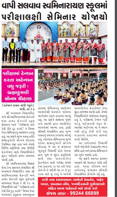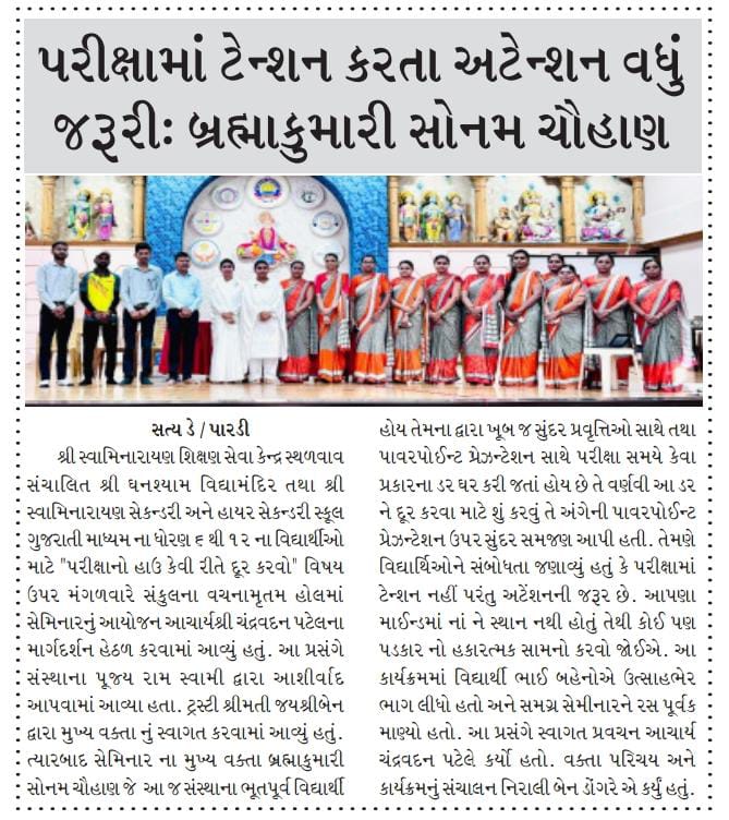 શ્રી ઘનશ્યામ વિદ્યામંદિર અને શ્રી સ્વામિનારાયણ માધ્યમિક અને ઉચ્ચત્તર માધ્યમિક શાળા, સલવાવમાં પરીક્ષાલક્ષી સેમિનાર યોજાયો
