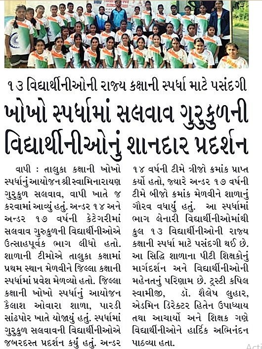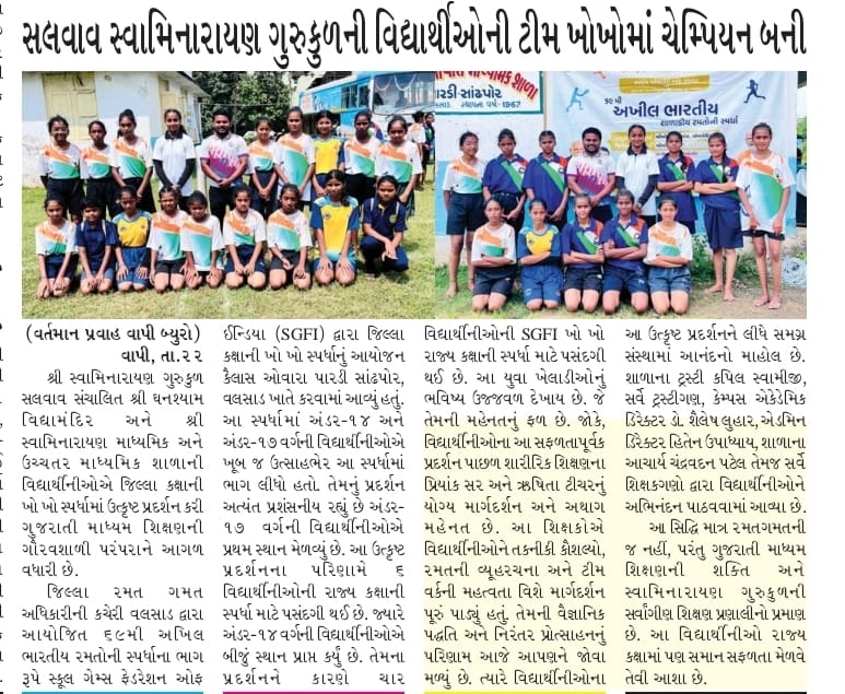 શ્રી ઘનશ્યામ વિદ્યામંદિર & શ્રી સ્વામિનારાયણ માધ્યમિક અને ઉચ્ચત્તર માધ્યમિક શાળાની વિદ્યાર્થીનીઓની ખો-ખોમાં રાજ્ય કક્ષાએ પસંદગી