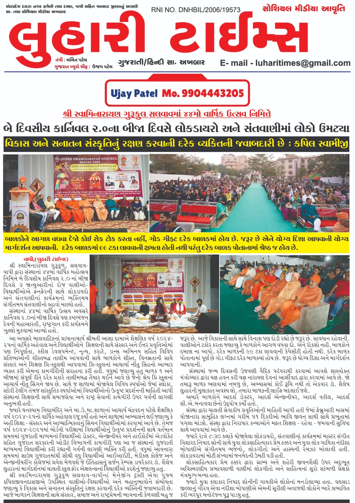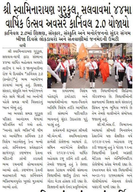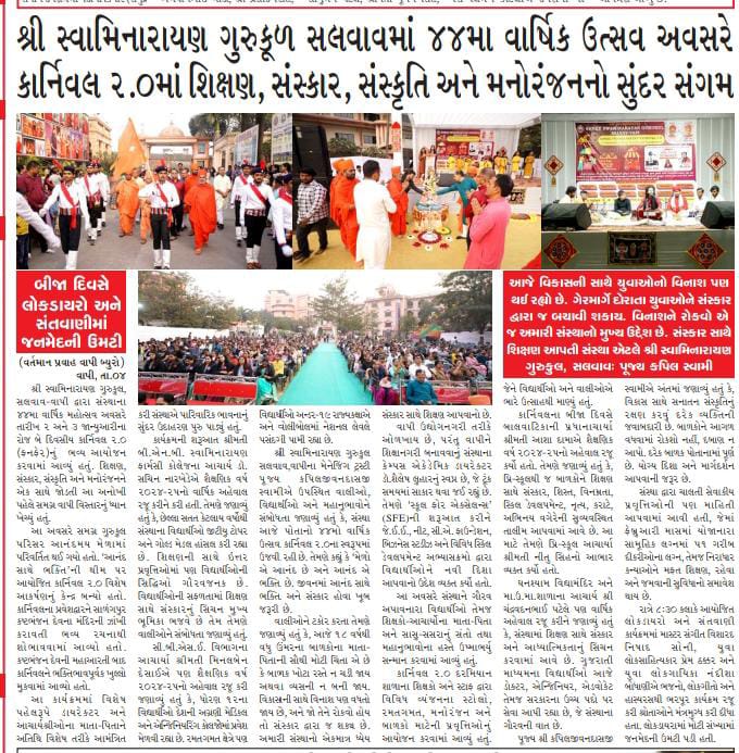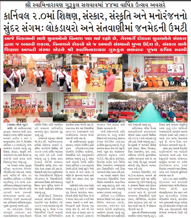 શ્રી સ્વામિનારાયણ ગુરુકુળ ,સલવાવમાં ૪૪ માં વાર્ષિક ઉત્સવ અવસરે કાર્નિવલ 2.0 યોજાયો