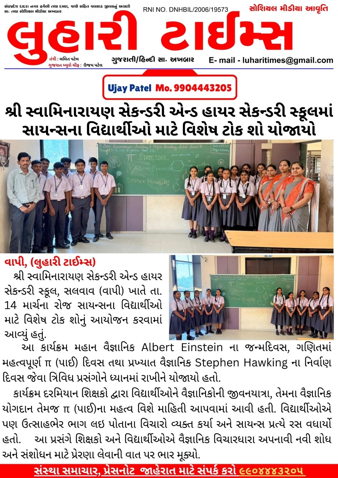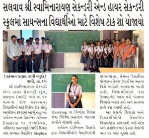 શ્રી સ્વામિનારાયણ સેકન્ડરી અને હાયર સેકન્ડરી સ્કૂલમાં સાયન્સના વિદ્યાર્થીઓ માટે વિશેષ ટોક શો યોજાયો.